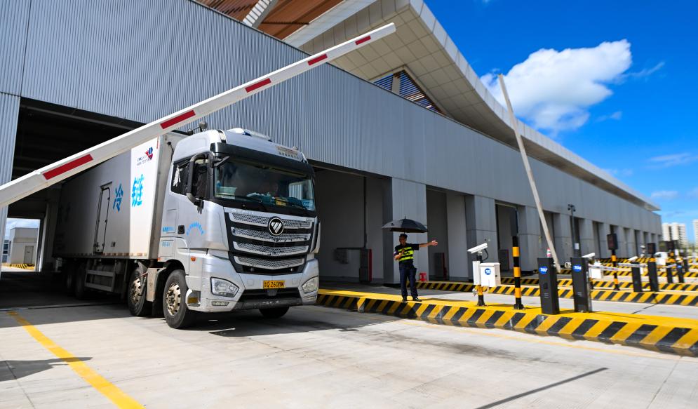 2025年9月17日,離島貨車通過海口新海港和南港“二線口岸”(貨運)集中查驗場,開往港區。新華社記者 楊冠宇 攝