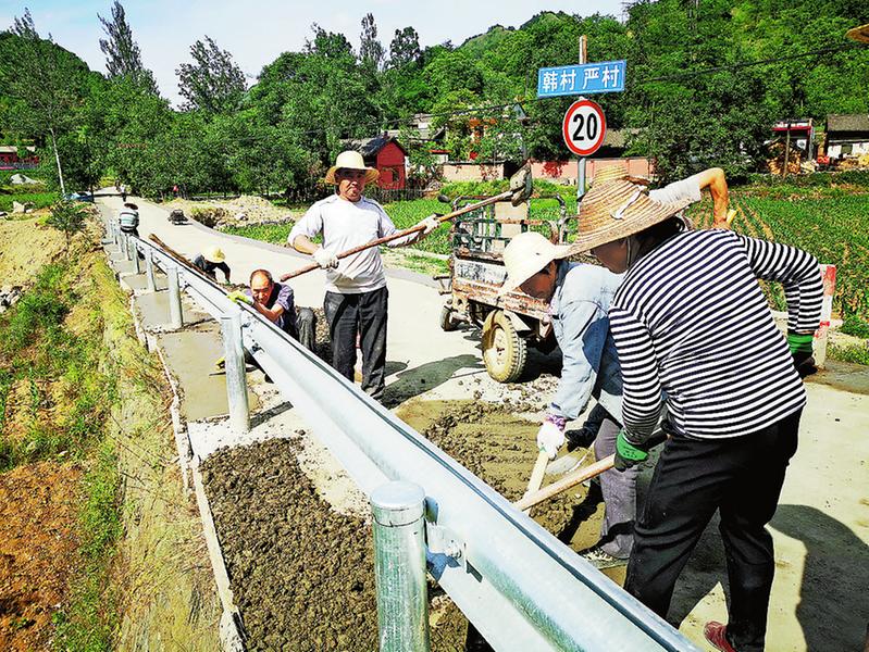 ?5月25日,在商州區(qū)板橋鎮(zhèn)韓村通村水泥路施工現(xiàn)場,工人們正在進(jìn)行路面拓寬。據(jù)了解,本次將拓寬1.4公里的水泥路面,進(jìn)一步保障村民出行安全。(記者王孝竹攝)