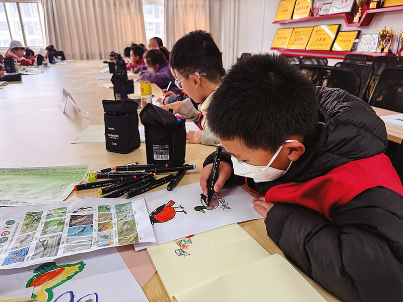 觀看完鳥類后,小記者們來到商洛學院丹江校區的活動室內,涂畫鳥類繪圖卡及繪制自然筆記,提升生態審美和記錄能力。小記者宋青澤分享感受時說:“看見鳥并將它畫出來感覺記憶更加深刻。以前經常從河畔經過,沒有注意到丹江邊有這么多鳥類。今后要經常來觀察,還要帶動同學們一起保護鳥類。”