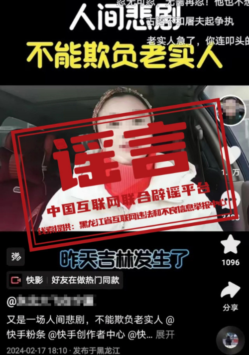 真相:近日,有網民在某視頻平臺發布視頻稱:“吉林省發生了一起刑事案件,有一名55歲的屠夫,因為土地矛盾糾紛問題,手持殺豬刀殺害了12個人,屠夫在逃亡途中跑到山林里被警方抓獲。”該視頻內容短時間內引起公眾大量關注和討論。經警方調查發現,視頻中所稱案發地并未發生此類案件,這則消息純屬子虛烏有,系黑龍江大慶網民呂某為了博取關注、吸引流量而編造發布的謠言。目前,大慶市公安機關已依據相關法律法規對呂某給予行政處罰。(來源:大慶市委網信辦)