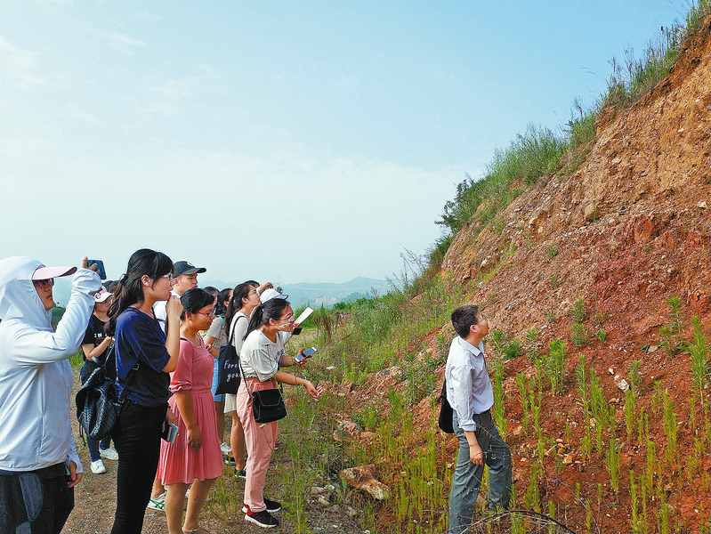 張孝存教授在商州區江山景區指導學生觀察腰市盆地邊緣的河湖相沉積特征